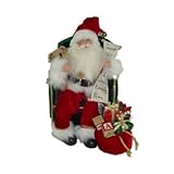 Large Santa Doll Figure Sitting in Chair W/ Bag of Gifts Fabric Handcrafted 15" Tall